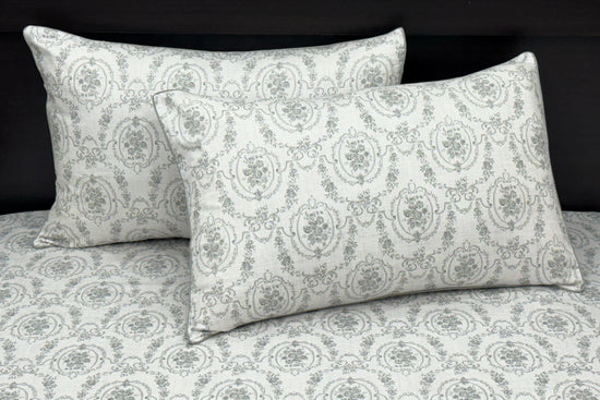 400TC Ivory Emblem Print Custom Bed Sheet Set in Shades of Grey