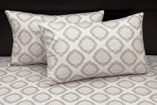 400TC Medallion Print Custom Bed Sheet Set in Shades of Grey and Pink