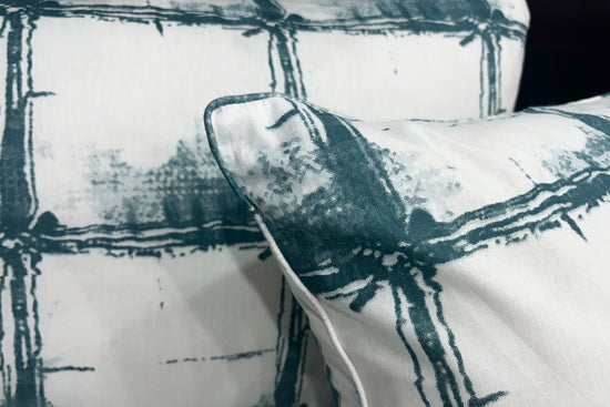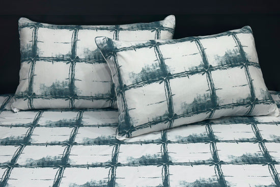 Art House Grid Custom Bed Sheet Set in Shades of Blue