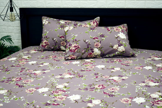 Carnation Floral Print Custom Bed Sheet Set in Shades of Brown and Burgundy