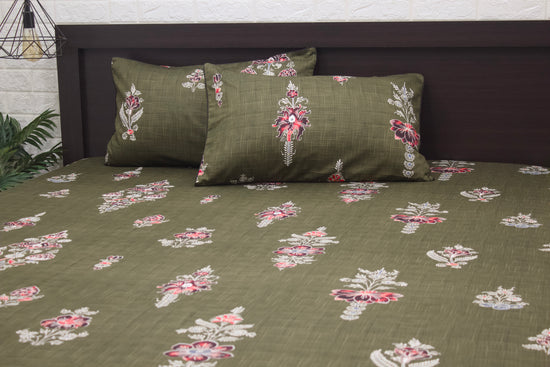 Elegant Motifs Print Custom Bed Sheet Set in Green