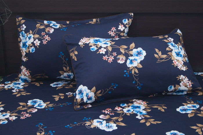 Spring Petals Print Custom Bed Sheet Set in Blue