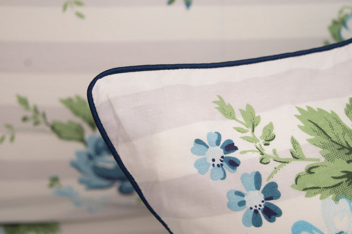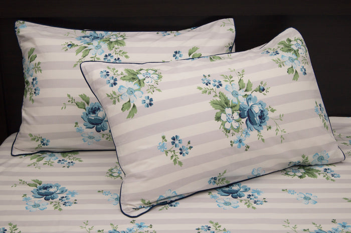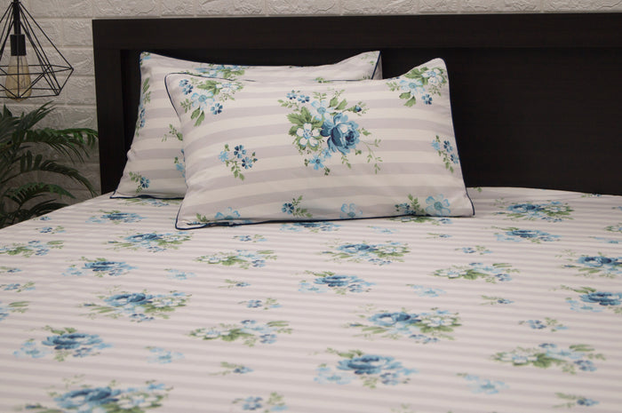 Stripes and Flowers Print Custom Bed Sheet Set in Blue