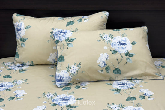 Vintage Beige Garden Custom Bed Sheet Set in Shades of Beige and Aqua